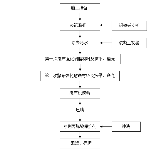 7.2.6對混凝土澆筑、撒料、抹光、壓花、涂刷保護劑等關(guān)鍵步驟必須嚴格按施工規(guī)程操作。