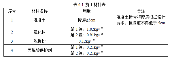 本工法所需主要材料見下表: