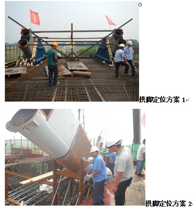 2、拱肋支架精確下料,加工制作一次成型,安裝拱腳用時一天,經(jīng)測量精度滿足要求。