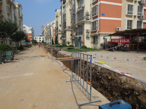 我公司于2013年5月16日中標該項目,項目地址位于城陽區(qū)康德居小區(qū)、圣富花苑小區(qū),工程內容包括二次網(wǎng)、紅線內的一次網(wǎng)、混水站內安裝、路面的拆除恢復、綠化的拆除恢復等。城陽區(qū)老舊小區(qū)供熱改造工程作為今年重要的民生建設項目,各界對工程的施工質量、進度以及現(xiàn)場的安全防護、文明施工都非常關注。我公司自進場以來,施工現(xiàn)場安全防護工作一直比較到位,施工組織合理,整體進度較快,受到了業(yè)主方的好評,并成為其他標段學習觀摩的榜樣。