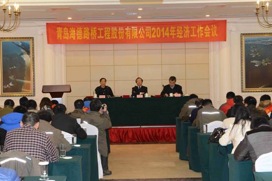 2月13日,青島海德路橋工程股份有限公司2014年經(jīng)濟工作會議在藍天賓館一樓會議廳隆重召開。公司董事長黃佳高、總經(jīng)理鞏光磊出席并分別發(fā)表重要講話,公司各部門、分公司共100余人參加,黨總支部副書記張永道主持會議。