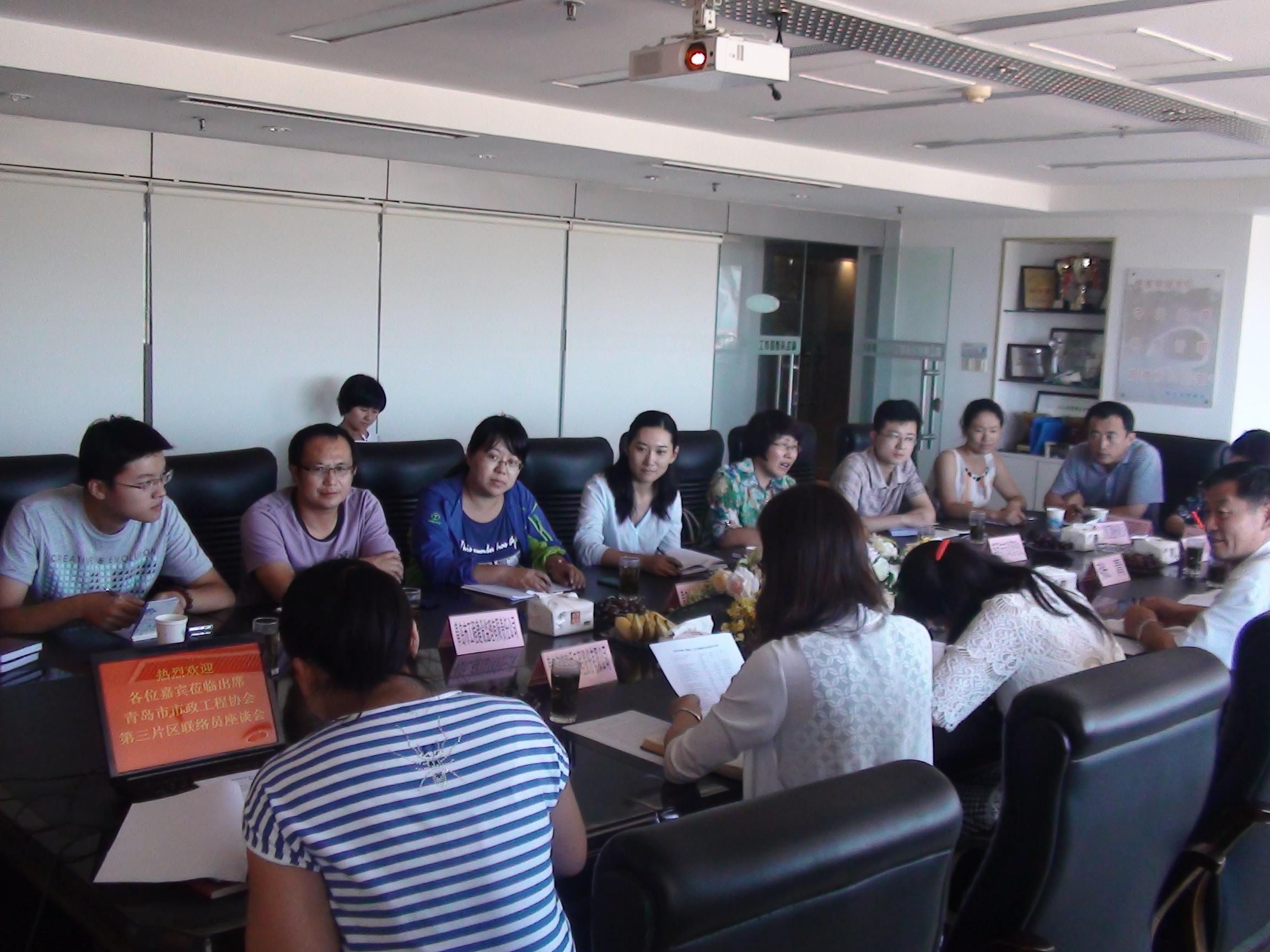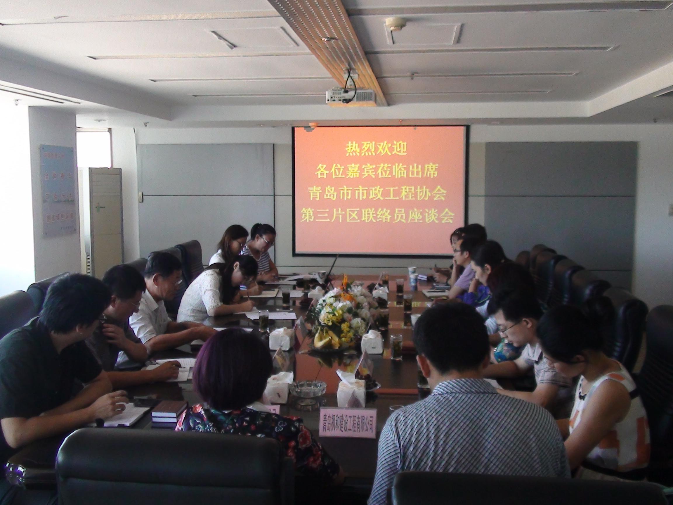 2014年9月4日下午14點(diǎn),由青島市市政工程協(xié)會(huì)發(fā)起組織、我單位主辦的協(xié)會(huì)第三片區(qū)首次聯(lián)絡(luò)員座談會(huì)在我公司會(huì)議室召開。青島市市政工程協(xié)會(huì)副會(huì)長王國良、秘書處副秘書長張青、三片區(qū)組長單位青島海德路橋工程股份有限公司執(zhí)行總裁寇媛媛出席了本次座談會(huì),參加此次會(huì)議的還有片區(qū)副組長單位青島市益水工程股份有限公司、青島市政監(jiān)理咨詢有限公司、萊西市市政管理處以及片區(qū)其他會(huì)員單位的聯(lián)絡(luò)員,共計(jì)15家單位。