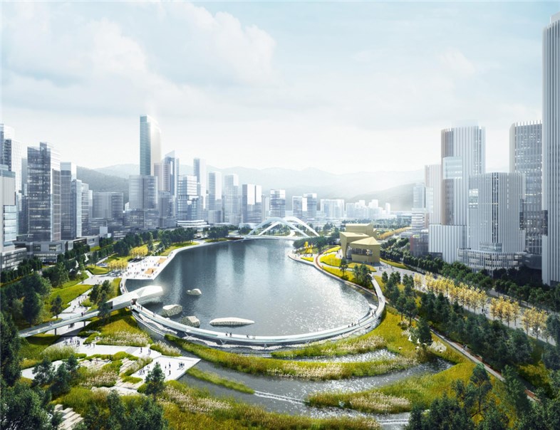 青島市張村河(嶗山段一期)綜合治理工程位于嶗山區(qū)片區(qū),西側(cè)起點為青銀高速路,向西側(cè)伸,終點至濱海大道,河道全長約4000米,研究寬度150~480米不等,總面積約118.4萬平方米。工程內(nèi)容主要包括防洪工程、橋梁工程、管線工程、水環(huán)境處理工程、景觀環(huán)境工程、智能工程、附屬建筑工程等。工程實施將張村河核心區(qū)兩岸打造為城景相融、環(huán)境優(yōu)美的高品質(zhì)景觀長廊;秉承公園城市的內(nèi)涵,從環(huán)境、城市和人的維度出發(fā),拓寬水際帶,恢復(fù)生物棲息地,打造連通山海的多自然、高彈性生態(tài)廊道;以水城一體為目標(biāo),營造參與共享、有活力的城市公共水岸空間。