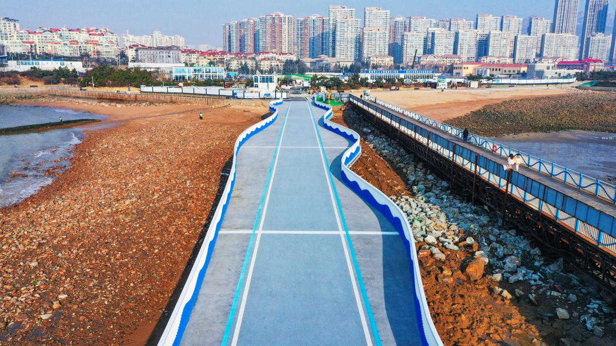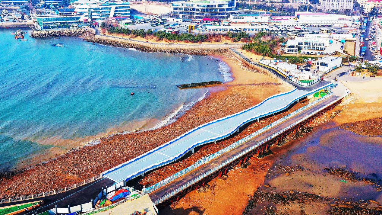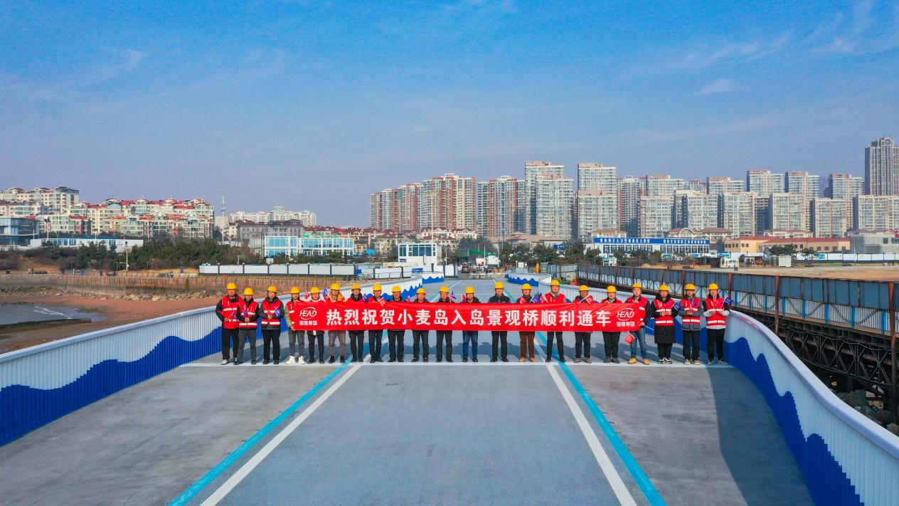 集團(tuán)承建的小麥島入島景觀(guān)橋南起小麥島公園,北至麥島路,是進(jìn)出小麥島公園的唯一通道。小麥島公園作為青島市著名的網(wǎng)紅打卡勝地,三面環(huán)海,環(huán)境優(yōu)美,觀(guān)景視角極佳。此前唯一進(jìn)出小麥島的通道為僅4米寬的陸連島堤壩,并且只有簡(jiǎn)單的鐵鏈防護(hù),每到節(jié)假日客流高峰期,入島通道人頭攢動(dòng)、摩肩接踵,既讓游玩體驗(yàn)打了折扣,通行時(shí)也不夠安全。為此,嶗山區(qū)政府經(jīng)多方調(diào)研后啟動(dòng)小麥島入島景觀(guān)橋工程,以提高入島安全性,提升游客游覽體驗(yàn),完善沿海一線(xiàn)景觀(guān)橋梁短板,為整座城市旅游品質(zhì)增添濃墨重彩的一筆。
