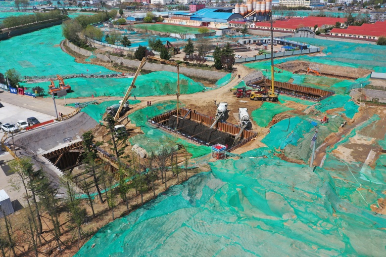 4月17日上午9點58分,集團承建的科技園五路橋工程(青島市張村河綜合治理工程八標段)首座承臺順利澆筑。
