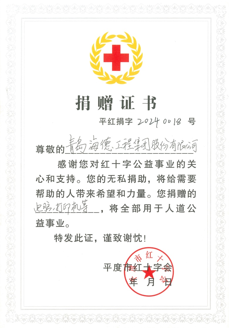 青島市住房和城鄉(xiāng)建設局人事處處長李延斌,青島市市政公用質量安全監(jiān)督站副站長茍國強,青島市派平度市田莊鎮(zhèn)駐村第一書記和工作隊隊長臧賢超,平度市紅十字會會長劉凱森,平度市田莊鎮(zhèn)黨委副書記、鎮(zhèn)長周振,平度市城鄉(xiāng)建設局黨組成員、四級調(diào)研員張景林,集團副總裁、工會主席呂同占及綜合管理部總經(jīng)理孟鵬等人共同出席了捐贈儀式。集團公司向官莊村捐贈臺式電腦、激光打印機及A4打印紙等辦公設備,以實際行動支持村委會的信息化建設與辦公效率提升。平度市紅十字會向集團公司頒發(fā)了捐贈證書,以表彰其對鄉(xiāng)村振興事業(yè)的積極貢獻。