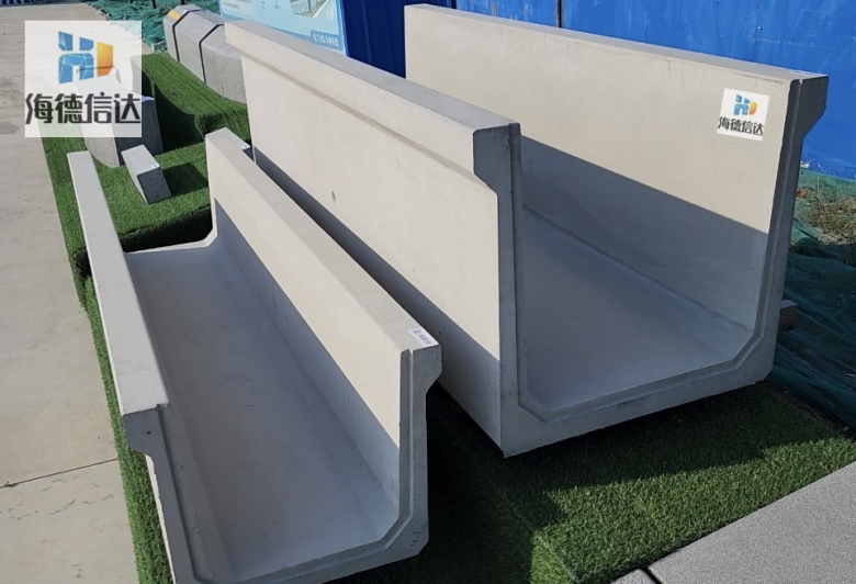 (海德信達U型排水溝實拍圖,高強度混凝土材質(zhì)與光滑內(nèi)壁設計)