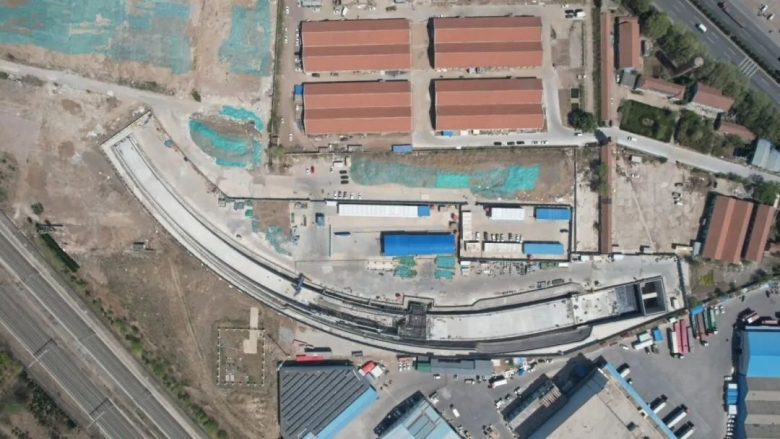 棘洪灘車輛段出入線從天山二路站引出,沿新城二路向西敷設(shè),下穿路北多棟建筑后上跨正線區(qū)間,下穿青銀高速路基段及山東物博公司廠房后接入棘洪灘車輛段。區(qū)間最低點設(shè)置下臥泵房,是全線貫通的重要一環(huán)。